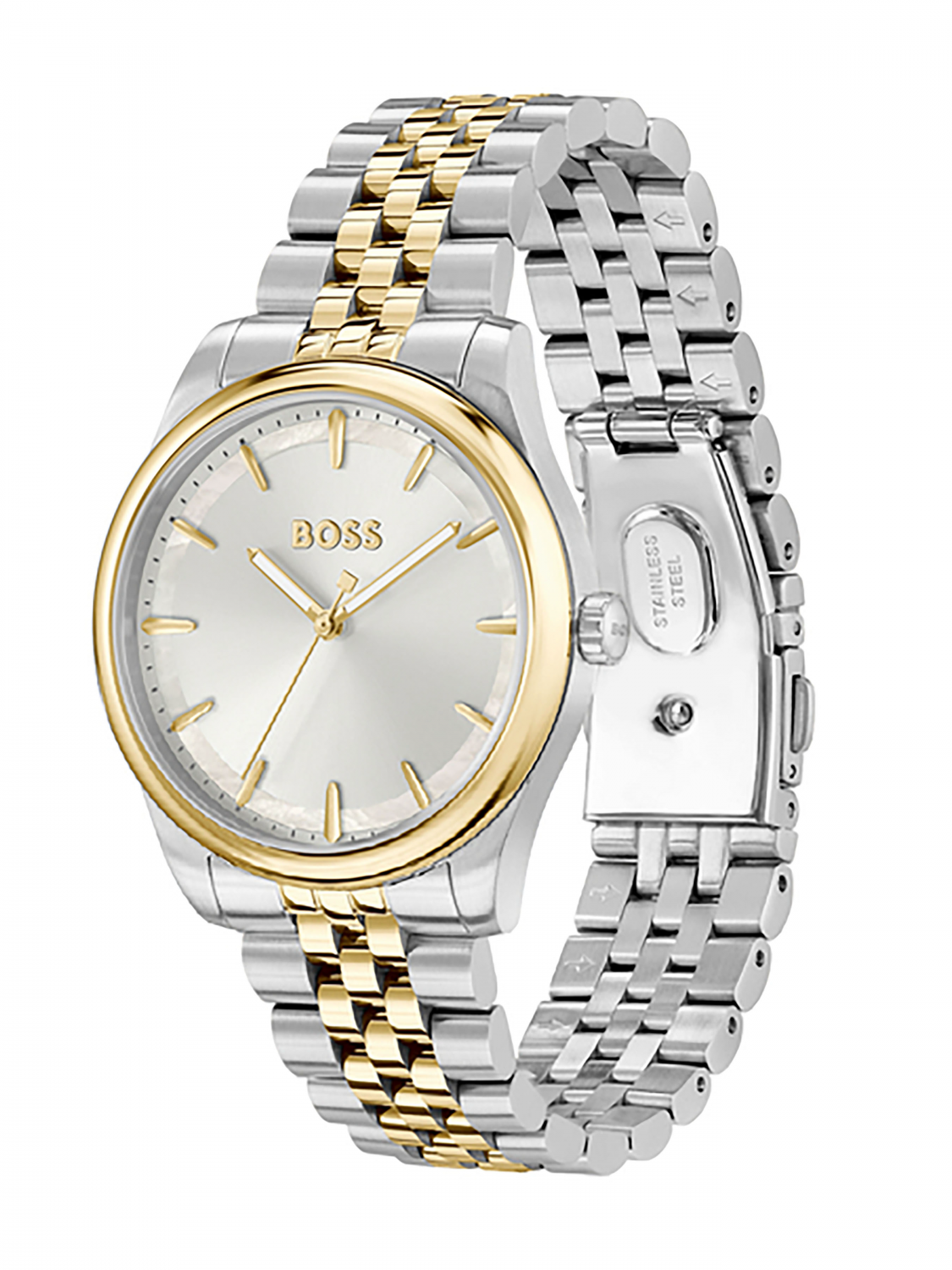 Женские кварцевые наручные часы Boss 1502779.Утонченные и выразительные индексы превращают минимализм циферблата в элегантный образец классического стиля.Круглый корпус. Циферблат выполнен по технологии Sunray (солнечные лучи). Метки в виде штрихов.