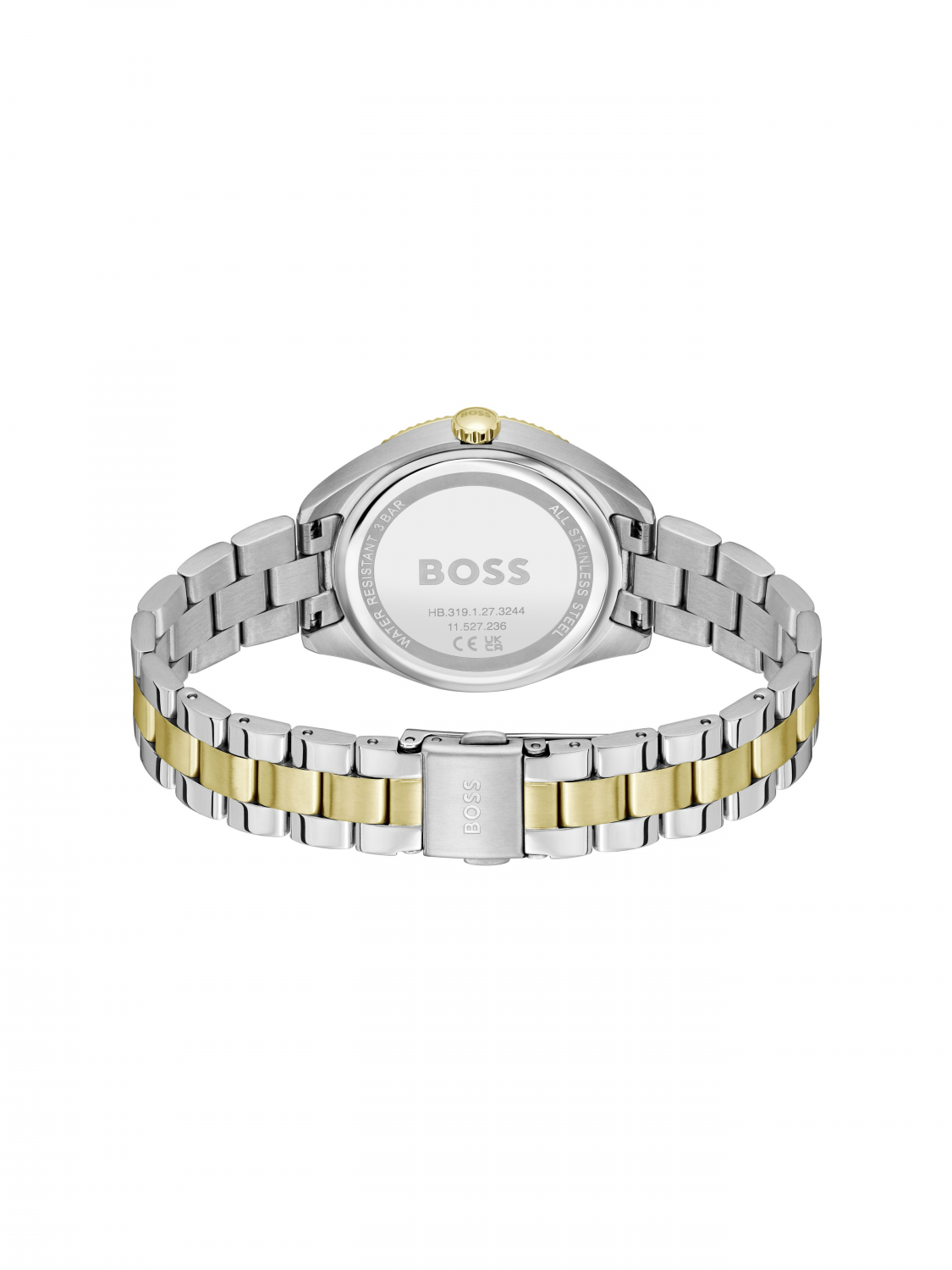 Женские многофункциональные часы BOSS из серии Sage Sport. Корпус из нержавеющей стали диаметром 34 мм.. Браслет из нержавеющей стали. Водонепроницаемость до 5 АТМ,защита от брызг и капель дождя.