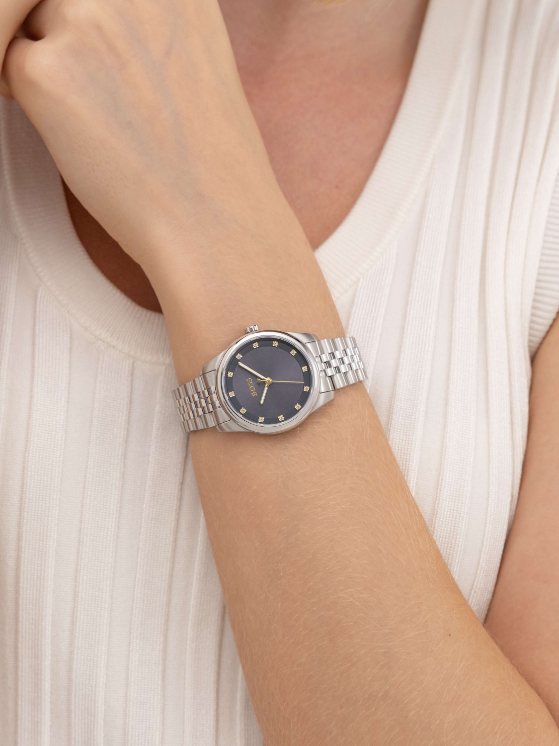 Корпус и браслет часов из нержавеющей стали. Циферблат с минеральным стеклом устойчивым к появлению царапин.