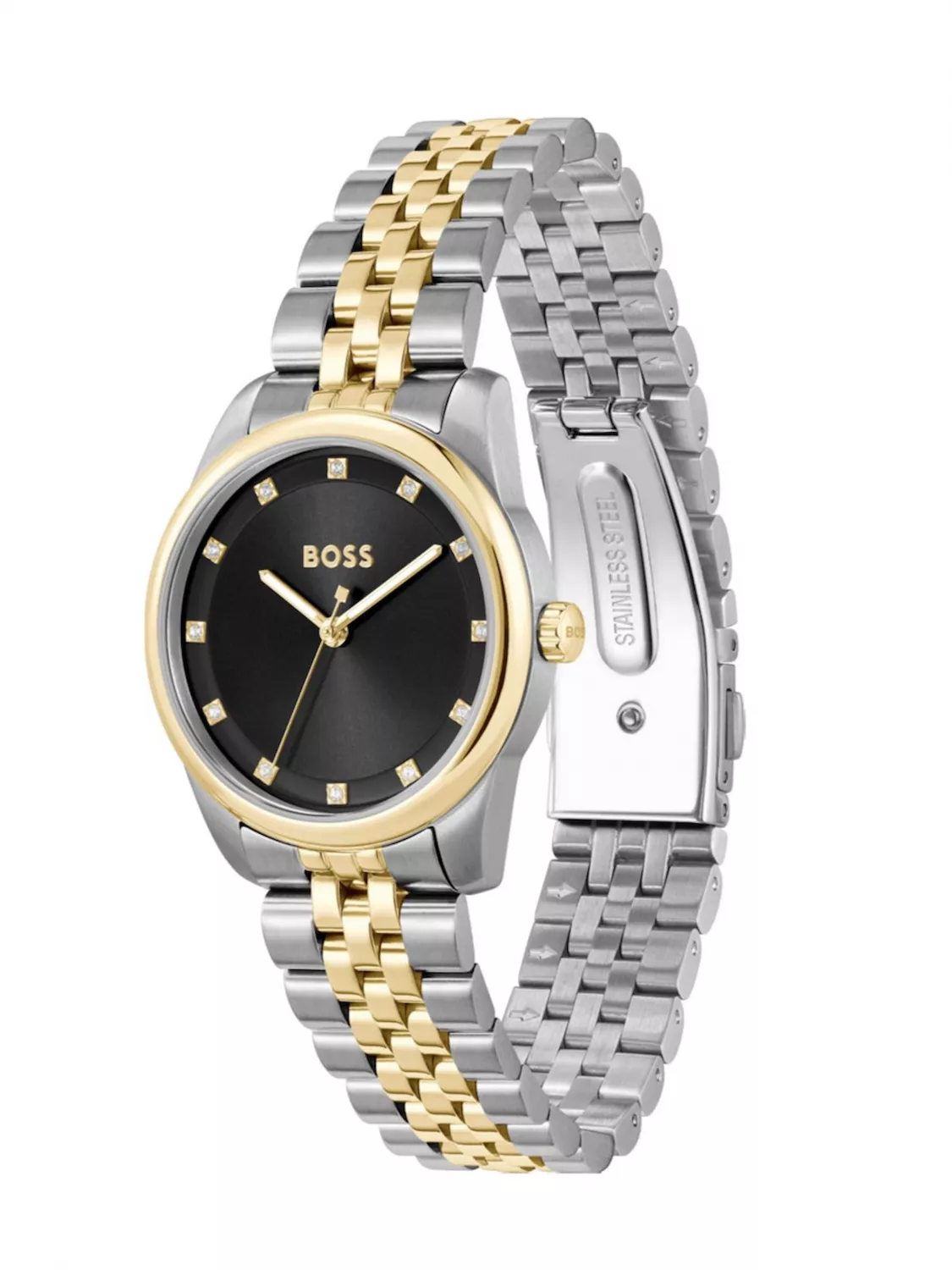 Корпус и браслет часов из нержавеющей стали с частичным PVD покрытием. Циферблат с минеральным стеклом устойчивым к появлению царапин.