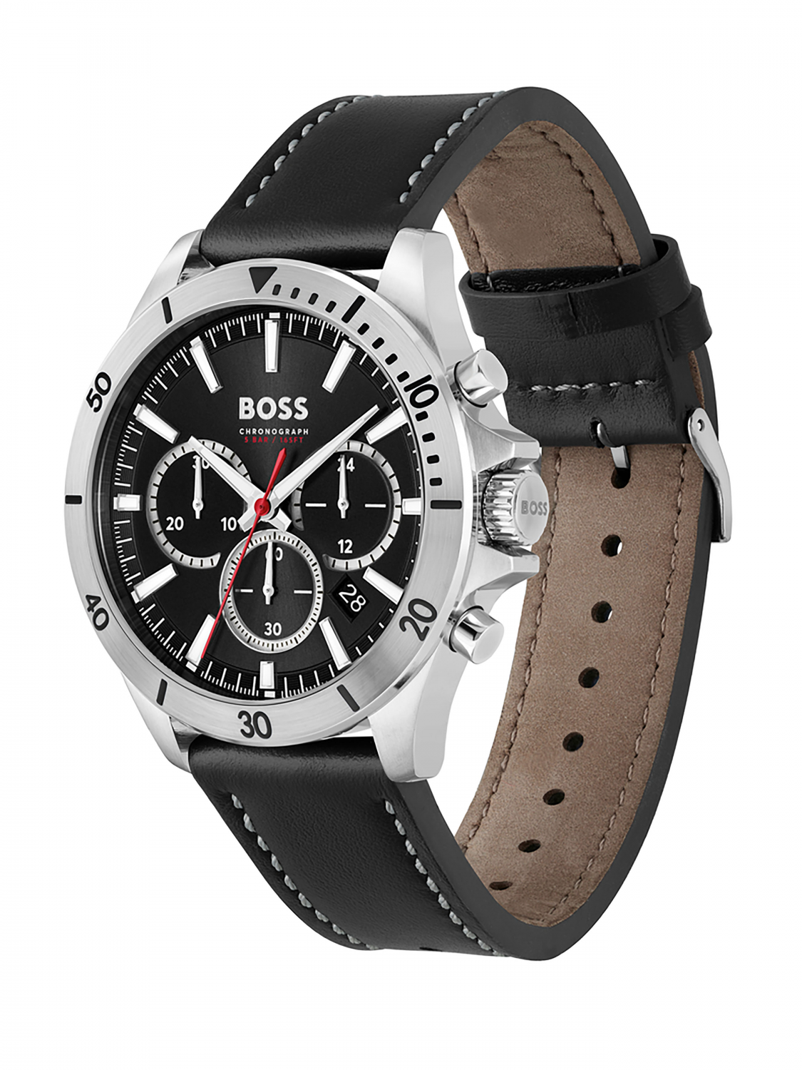 Мужские кварцевые часы BOSS 1514055, коллекция TROPER. Корпус часов выполнен из нержавеющей стали. Фукции: хронограф, дата. Диаметр:45 мм. Кожанный ремешок. Водозащита: 5 bar.