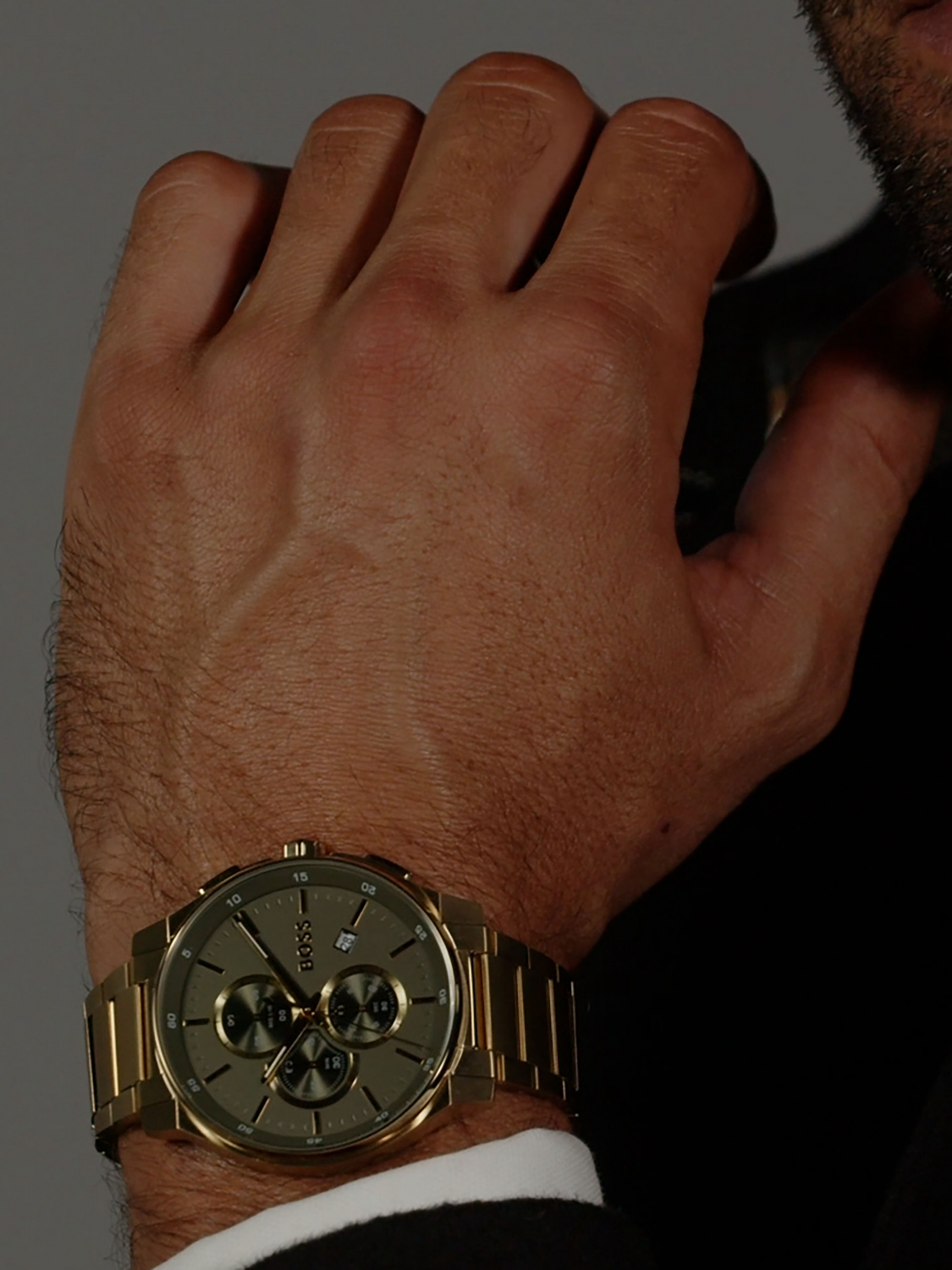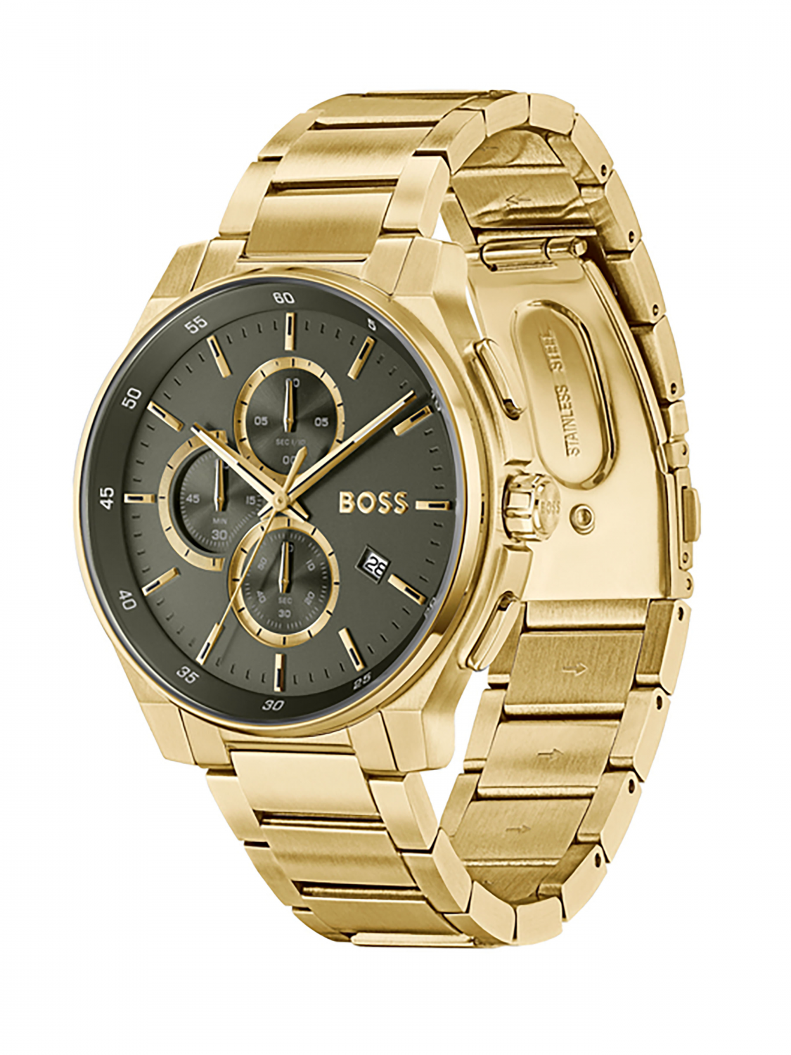 Корпус часов и браслет выполнены из нержавеющей стали с PVD покрытием. Диаметр : 45мм. Функции : хронограф, дата. Водозащита 5 bar.