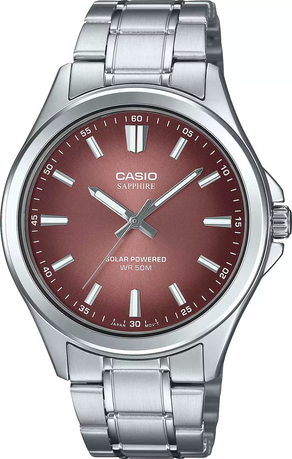 Мужские часы. Питание от солнечной энергии. Время работы - 4 месяца. Циферблат с метками в виде штрихов защищен прочным сапфировым стеклом. Заводная головка с защитой. Браслет с тройной раскладывающейся застежкой, расстегиваемой одним касанием.