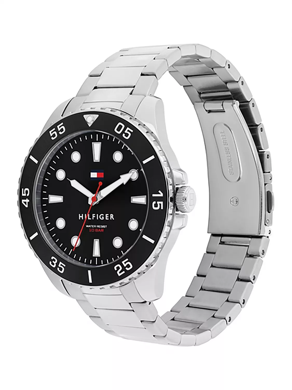 Минеральное стекло. Корпус и браслет часов выполнены из нержавеющей стали. Рифленая заводная головка.