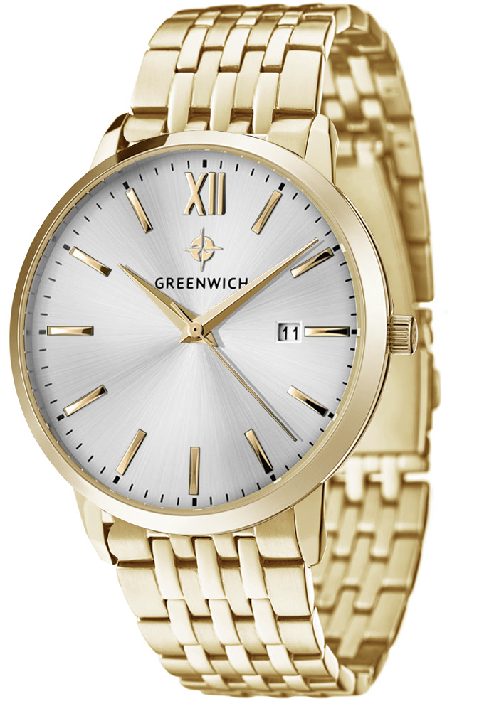 Удобные и стильные — эти два качества успешно сочетаются в часах серии Brig. Круглый корпус диаметром 41 мм сделан из гипоаллергенной нержавеющей стали с PVD-покрытием из желтого золота. Это особенно важно для аксессуара, который контактирует непосредственно с кожей запястья. На серебристом циферблате только необходимые детали, поэтому время считывается без затруднения. Полировка «sun ray» в виде лучей, исходящих от центра визуально выделяет три стрелки: часовую, минутную и секундную. Для определения даты есть окошко в правой части напротив маркера «3 часа». Часы комплектуются стальным браслетом с удобной в использовании и надежной застежкой-клипсой.