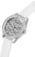 Женские часы с круглым стальным корпусом G Gloss. Метки в виде точек. Безель украшен кристаллами. Рифленая заводная головка. Кожаный ремешок с классической застежкой.