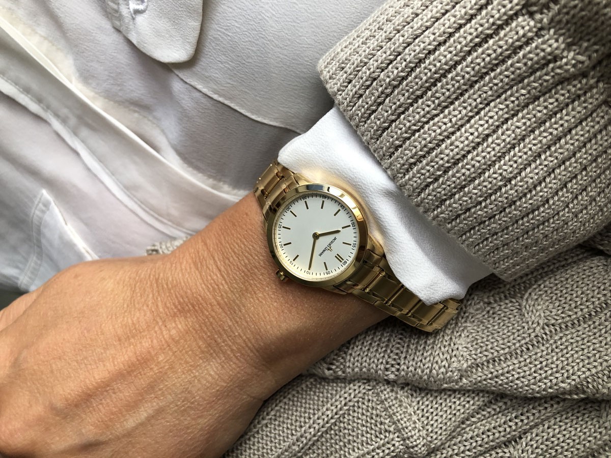 Женские кварцевые часы коллекции Classic. Круглый стальной корпус с PVD покрытием цвета желтое золото. Циферблат с метками в виде штрихов. минеральное повышенной прочности Crystex. Браслет с раскладывающейся застежкой. Водозащита 10 АТМ/bar.