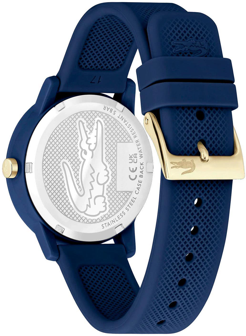 Женские наручные часы Lacoste.12.12 Ladies. Круглый пластиковый корпус с минеральным стеклом. Матовый циферблат украшен фирменным логотипом. Накладные метки в виде штрихов. Гладкая заводная головка с логотипом. Завинчивающаяся задняя крышка с гравировкой. Текстурированный силиконовый ремешок с классической застежкой.
