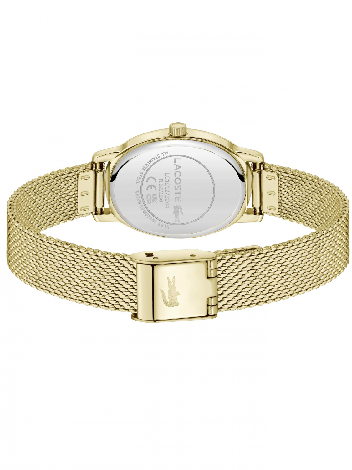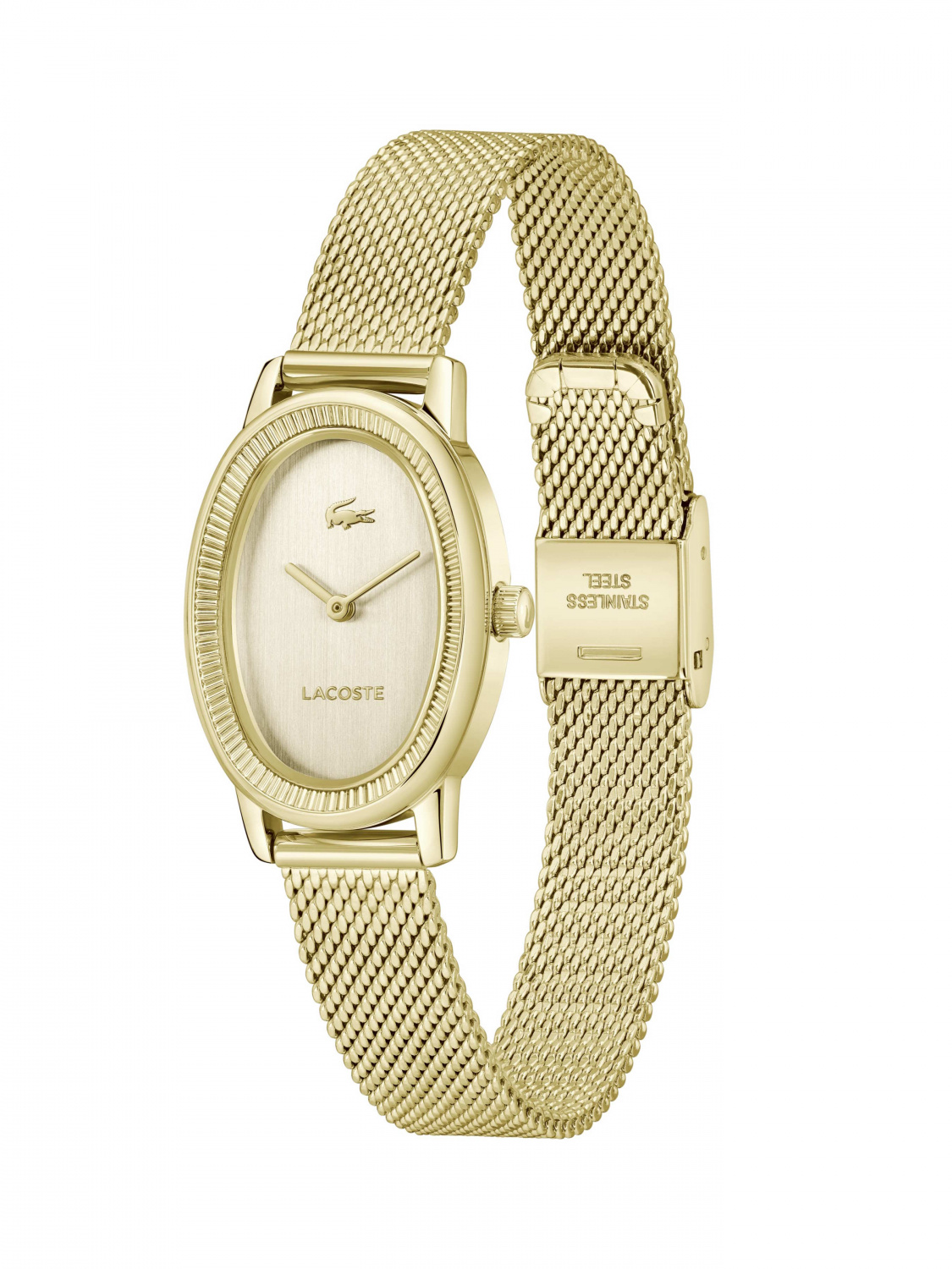 Овальный корпус и браслет миланского плетения выполнены из нержавеющей стали 316L с PVD покрытием.