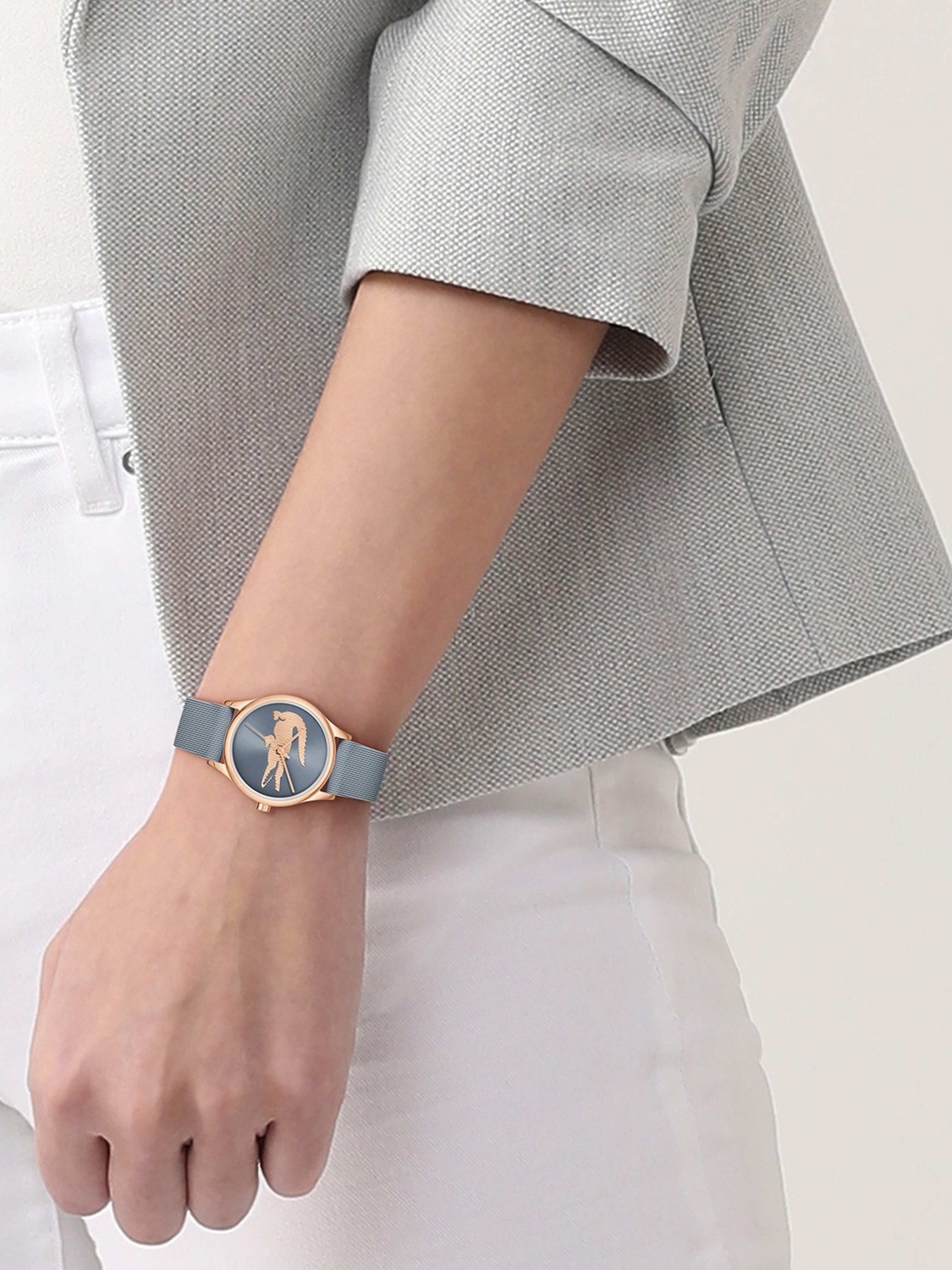 Циферблат украшен логотипом бренда и защищен минеральным стеклом устойчивым к мелким повреждениям и царапинам.
