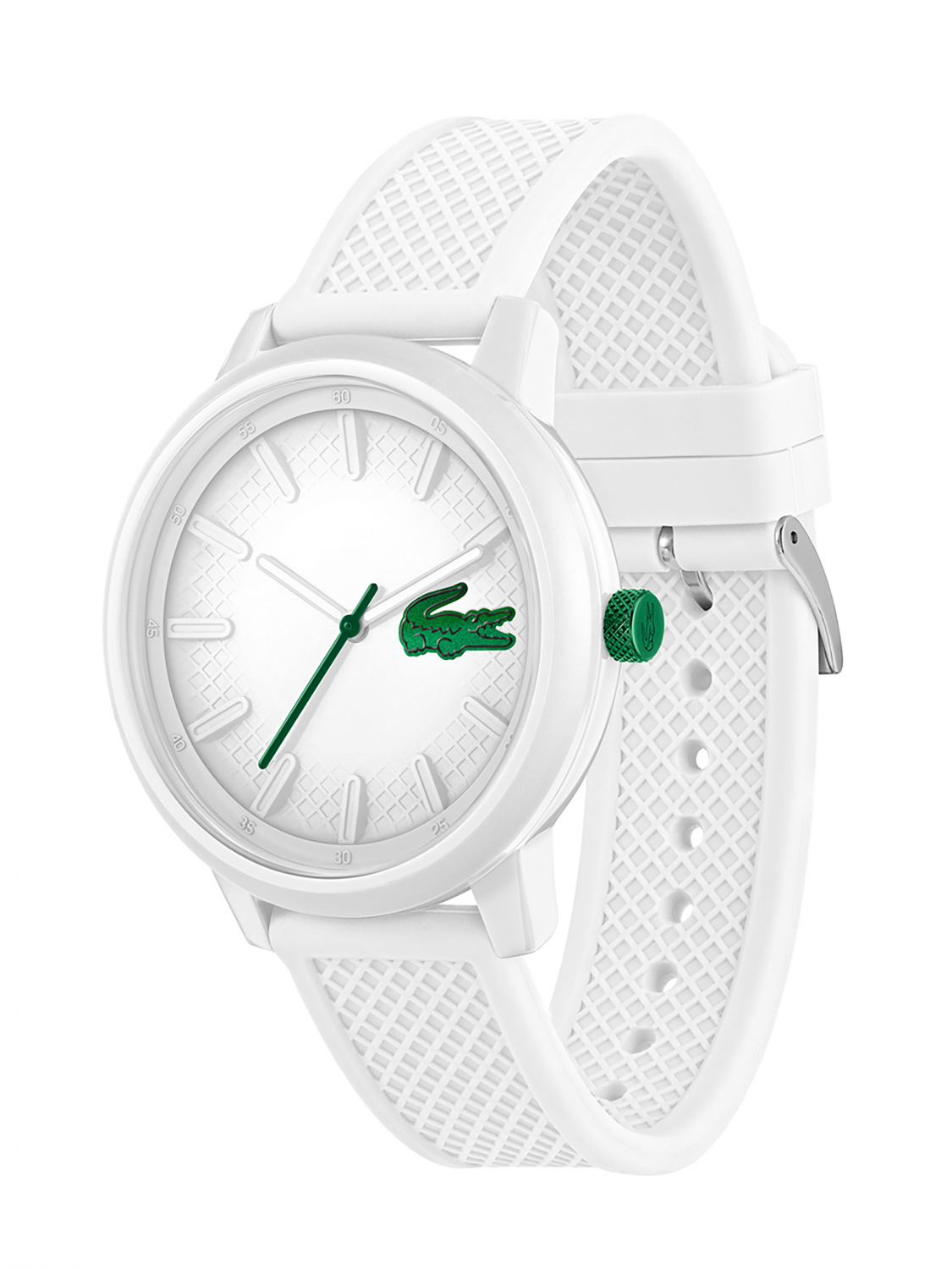 Кварцевые часы Lacoste.12.12 оснащены силиконовым ремешком с культовой текстурой хлопка Пике. На внешнем круге циферблата так же имеется текстура хлопок Пике.Часы имеют матовый безель, изготовленный из TR90 (смола с нейлоном) .