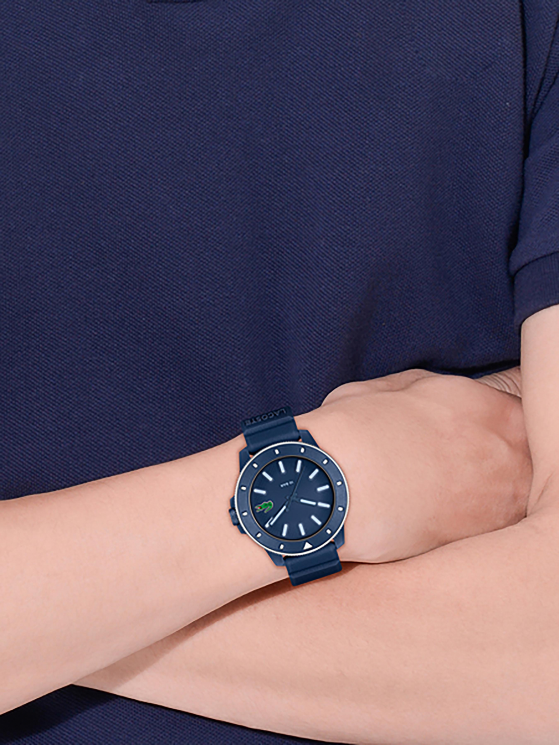Мужские кварцевые часы LACOSTE.12.12 SCUBA. Пластиковый круглый корпус. Минеральное стекло. Силиконовый ремешок на традиционной застежке. Водонепроницаемость 10 АТМ/bar.