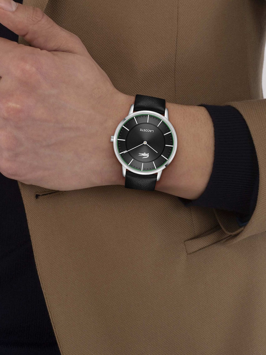 Корпус часов выполнен из нержавеющей стали 316L. Черный циферблат с минеральным стеклом устойчивым к появлению царапин.