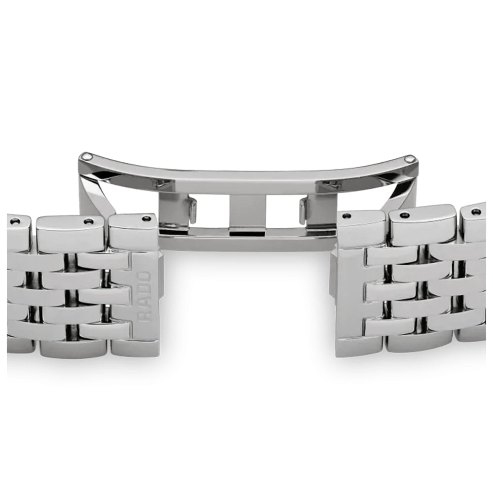 Швейцарские кварцевые часы Rado Florence Classic Diamonds R48912713. Сапфировое стекло устойчивое к мелким механическим повреждениям. Корпус изготовлен из нержавеющей стали. Безель с PVD-покрытием. Циферблат украшен бриллиантами. Окошко даты находится в положении 6 часов. Класс водозащиты: 50 метров, позволит защитить корпус от случайных брызг или капель дождя. Браслет из стали на застёжке-бабочке.