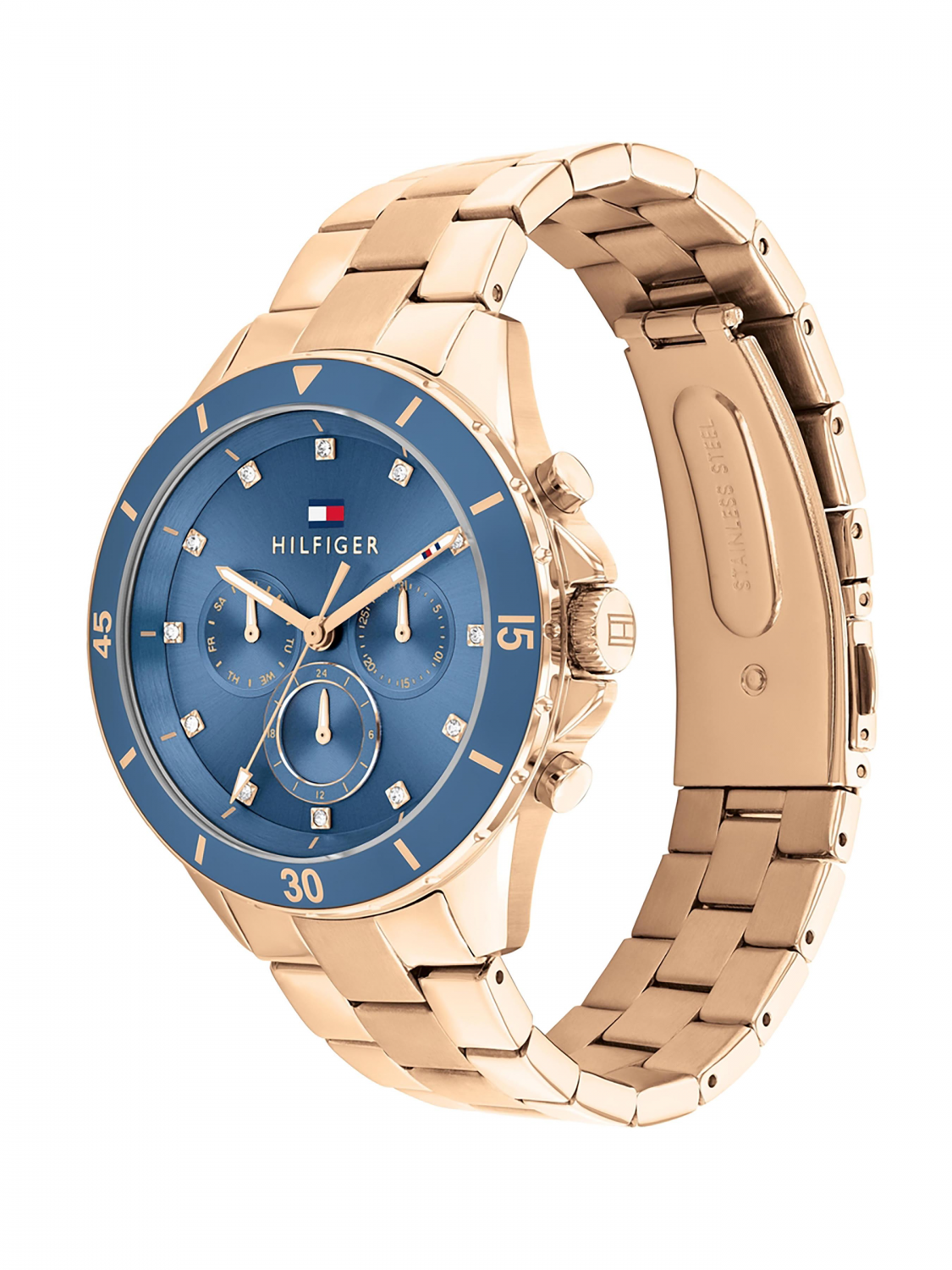 Женские кварцевые часы коллекции MELLIE.Круглый стальной корпус.12 и 24 часовой формат времени.Дата и день недели вынесены на отдельные циферблаты.Циферблат с метками в виде кристаллов.Минеральное стекло. Стальной браслет с раскладывающейся застежкой.Водозащита 5 АТМ/bar.