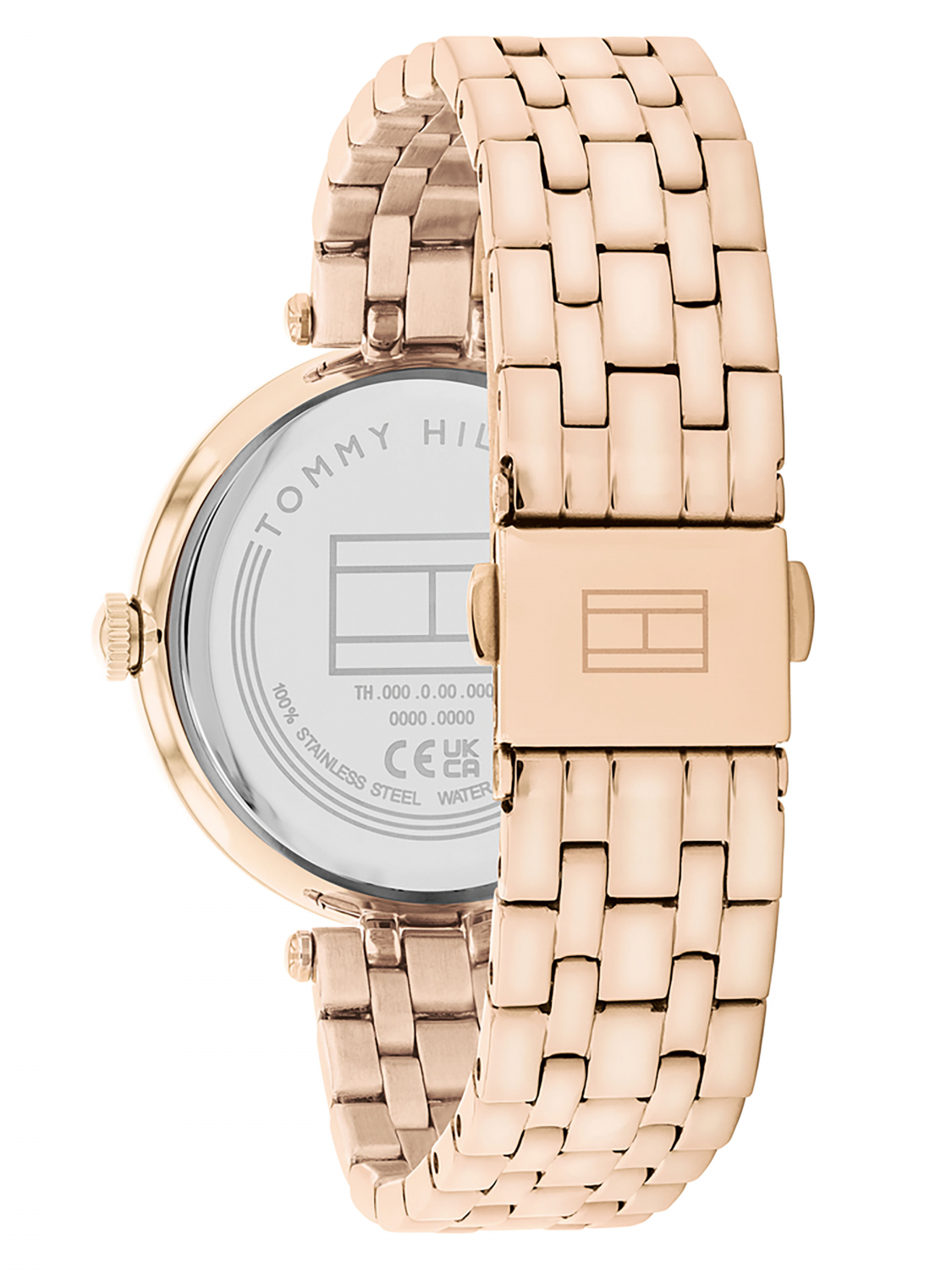 Женские кварцевые часы Tommy Hilfiger. Коллекция Natalie. Круглый стальной корпус. Безель оформлен кристаллами. Минеральное стело. Корпус и браслет выполнены из нержавеющей стали с PVD покрытием.Браслет с раскладной застежкой. Водозащита 3 АТМ/bar.