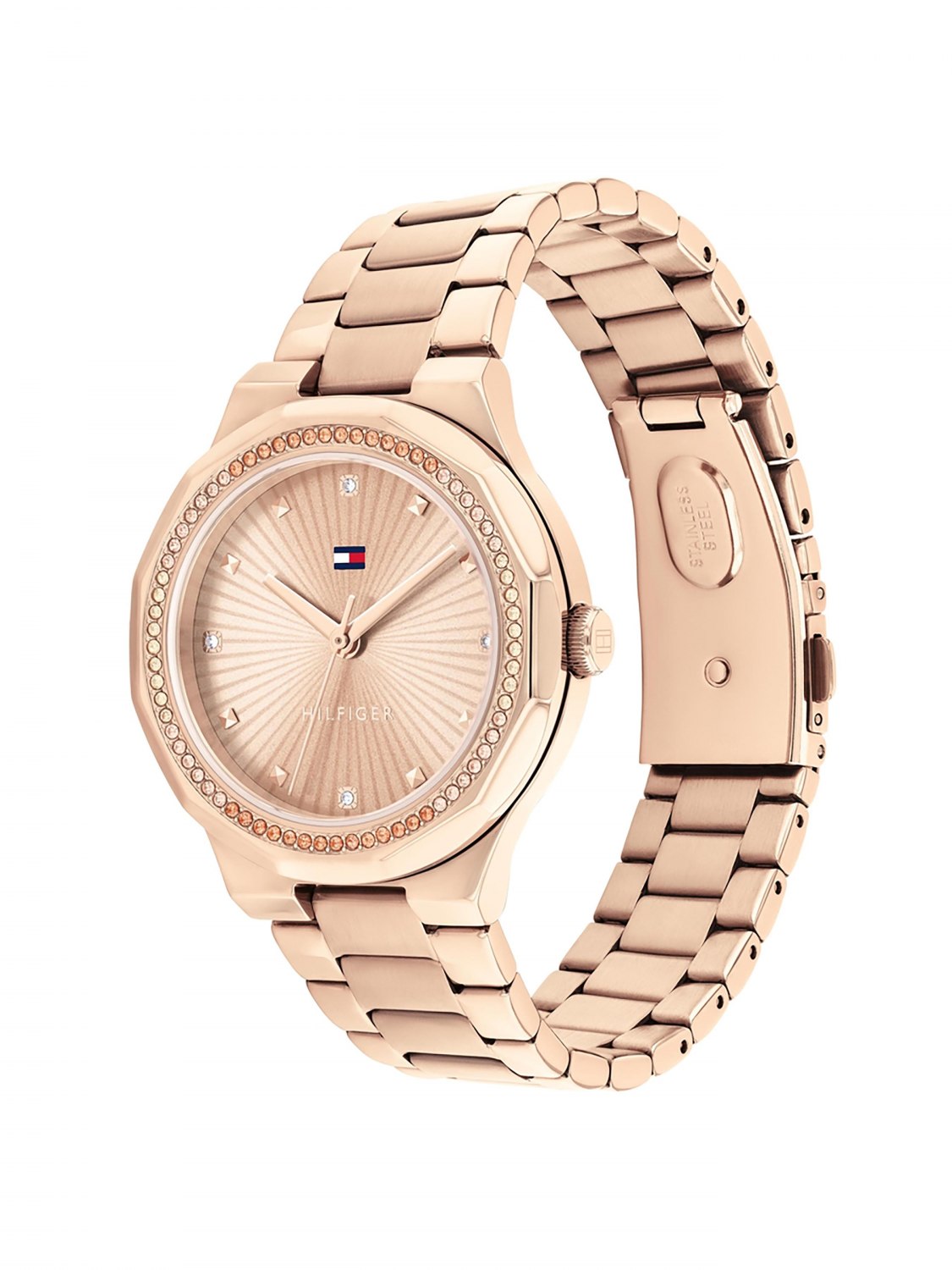 Женские кварцевые часы коллекции Piper.Круглый стальной корпус.Метки в виде точек. Безель и циферблат украшены кристаллами.Минеральное стекло.Корпус и браслет выполнены из стали с PVD покрытием.Браслет с раскладывающейся застежкой.Водозащита 3 АТМ/bar..